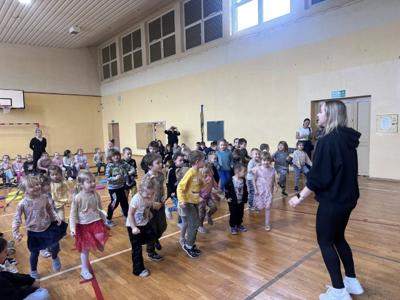 Niespodzianką była wizyta „Krecika”, który rozbawił dzieci i zachęcał je do ruchu, wspólnie tańcząc i ćwicząc. Maskotka wzbudziła ogromne zainteresowanie i wywołała wiele radości wśród najmłodszych.